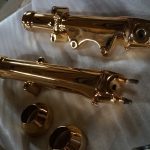 Astor has provided metal finishing services to automotive and motorcycles since 1951. Our technical expertise of plating onto aluminium has extended the possibilities. While the final assembled result is something to behold (you may have seen featured at events or in industry magazines) here are some of the components which Astor have stripped of dull painted finishes and mirror polished, then gold plated. 24KT AWESOME.